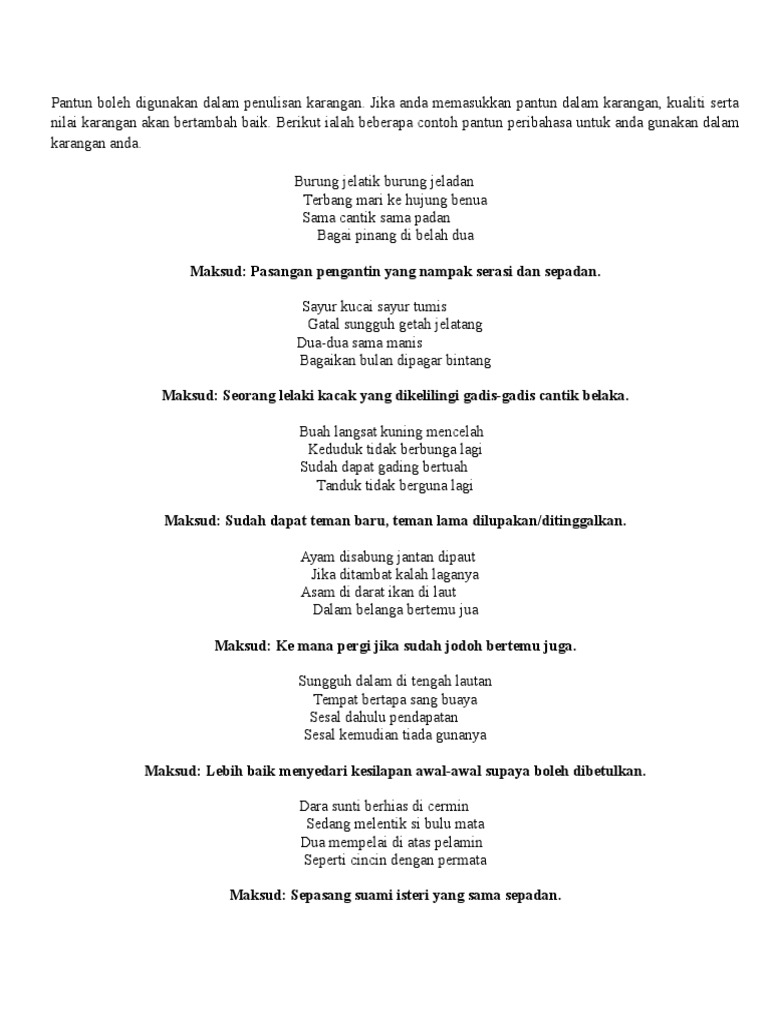 Pantun Yang Boleh Digunakan Dalam Penulisan Karangan Doc Pantun Boleh Digunakan Dalam Penulisan Karangan Jika Anda Memasukkan Pantun Dalam Karangan Course Hero